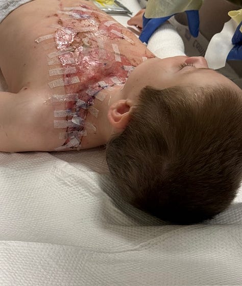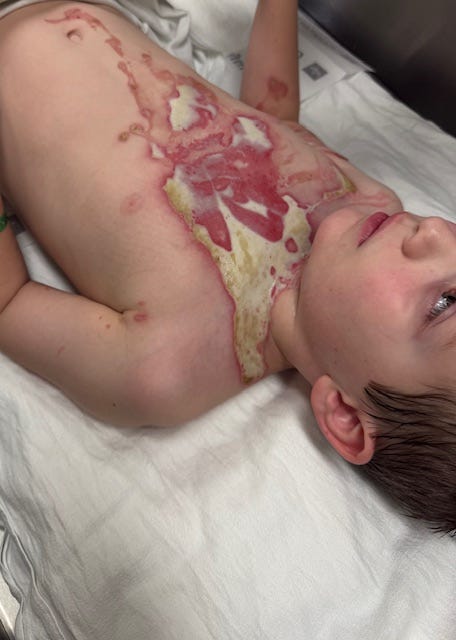 The photos are not for everyone. Scroll past if you don’t want to see them. But his family felt it was important to provide a full, authentic context of their son’s injuries so that others may understand how dangerous the burns are.