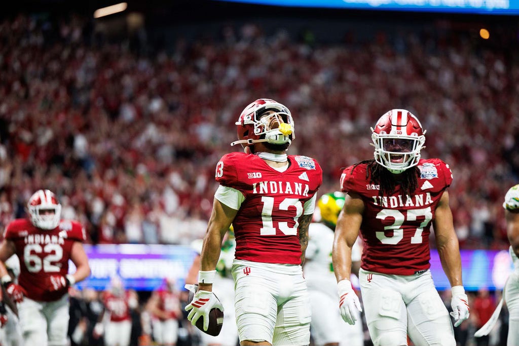 Indiana beat Oregon, 56-22, the night before at Mercedes-Benz Stadium. It was a knockout victory over Nike’s flagship school for the “three stripes” operation. On Thursday, another Adidas school, Miami, eliminated Mississippi in the Fiesta Bowl.
