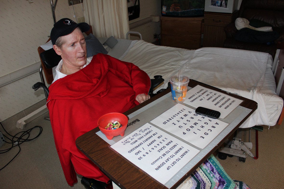 During one visit, I fed him a chocolate bar. On another occasion, we watched the Winter Olympics together on television. At one point, Johnson indicated he wanted to smoke a cigarette. I summoned a nurse, who helped the former champion skier to the patio and attached a rubber tube to a lit cigarette in an ash tray. I sat in silence while he sucked on the tube and stared off.