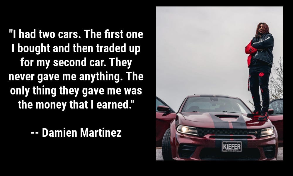 “They did not buy me a house or a car,” Martinez told me on Thursday. “I had two cars. The first one I bought and then traded up for my second car. They never gave me anything. The only thing they gave me was the money that I earned… I used that money to get my cars and (rental) house.”