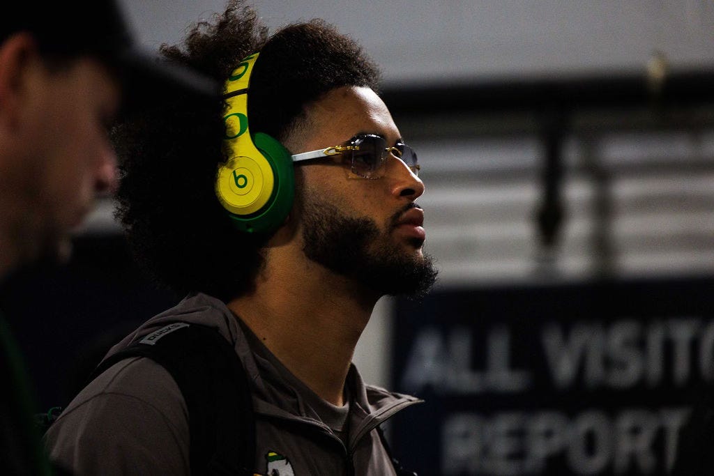 Dante Moore was up against it on Wednesday. Literally and figuratively, the University of Oregon quarterback found himself needing to make a decision.