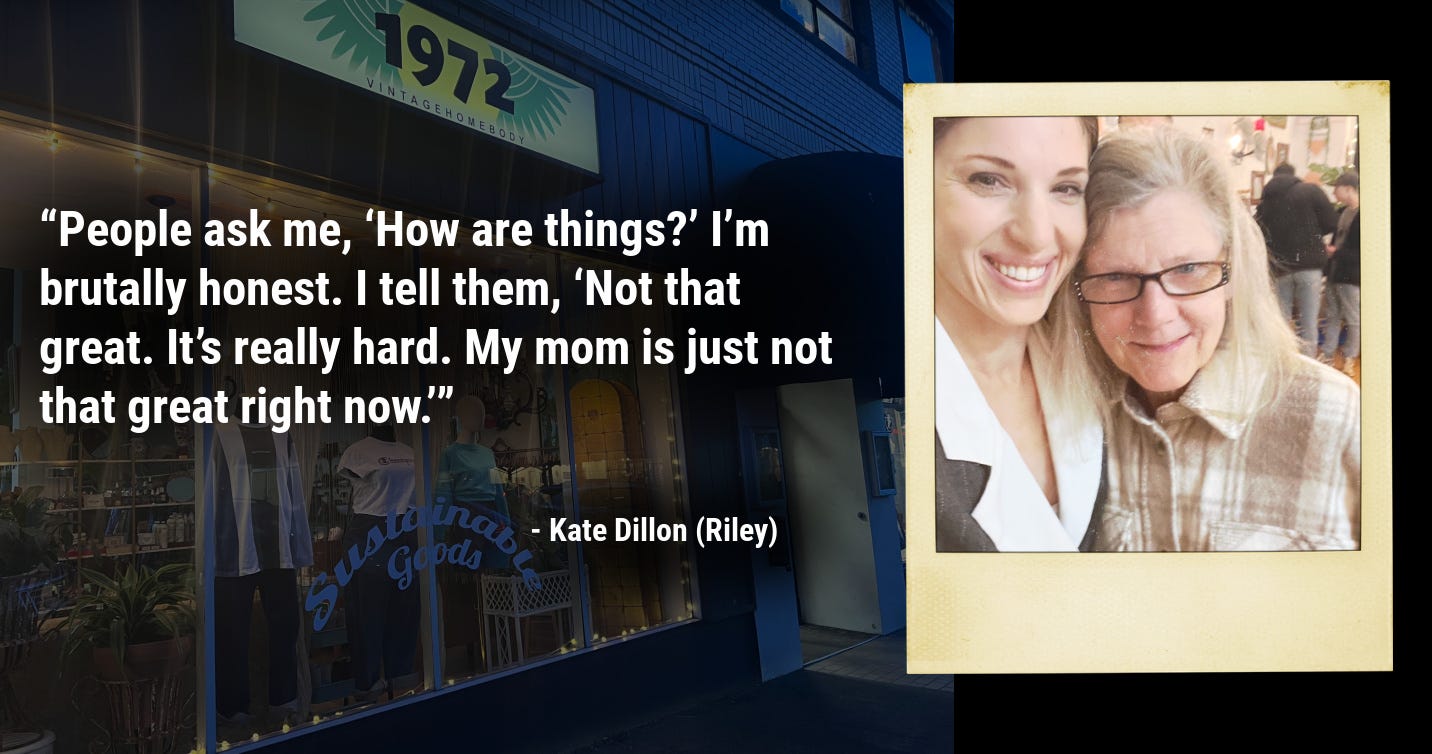 “People ask me, ‘How are things?’” Kate said. “I’m brutally honest. I tell them, ‘Not that great. It’s really hard. My mom is just not that great right now.’”