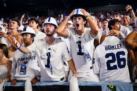 UNIVERSITY PARK, Pa. — The crowd thundered. The music thumped. A pyrotechnic crew launched fireworks from the rooftop of Beaver Stadium, and 111,015 souls dressed in mostly white sucked air into their lungs and screamed until their throats were raw.