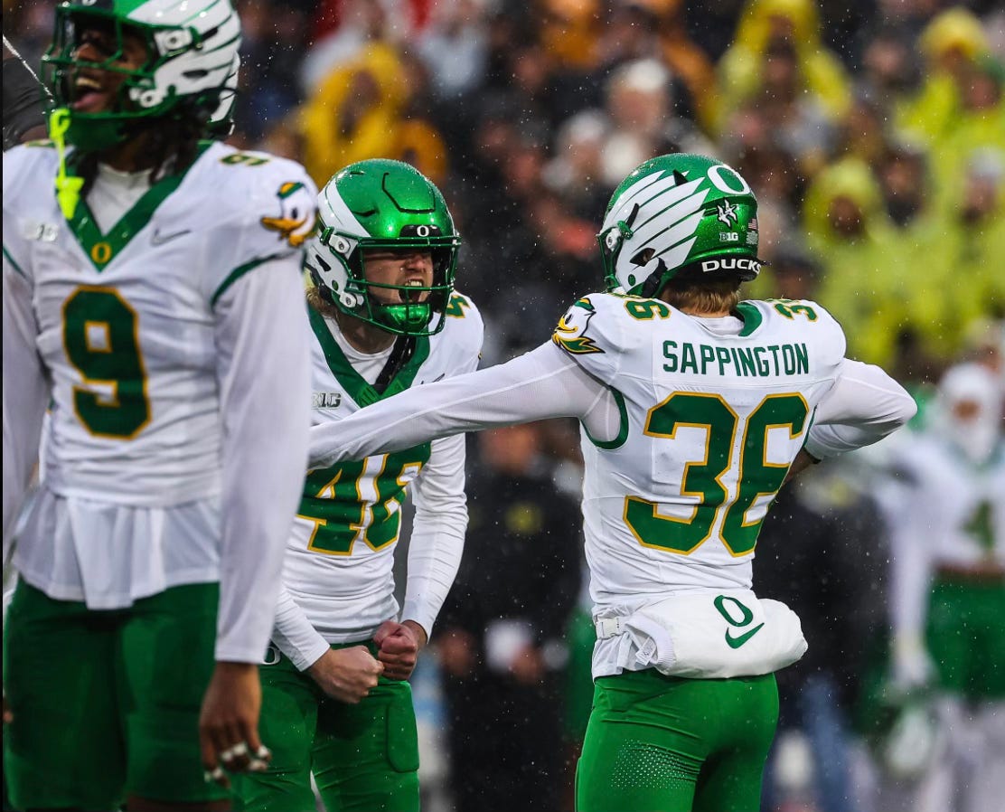 Oregon won in Iowa City. That’s tricky enough. The Ducks did it by coming from behind in the final minutes, driving the ball down the field, against the wind, rain, Hawkeyes’ defense, and 69,250 corn-fed ticket holders screaming for UO’s spleen.