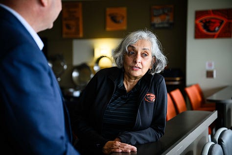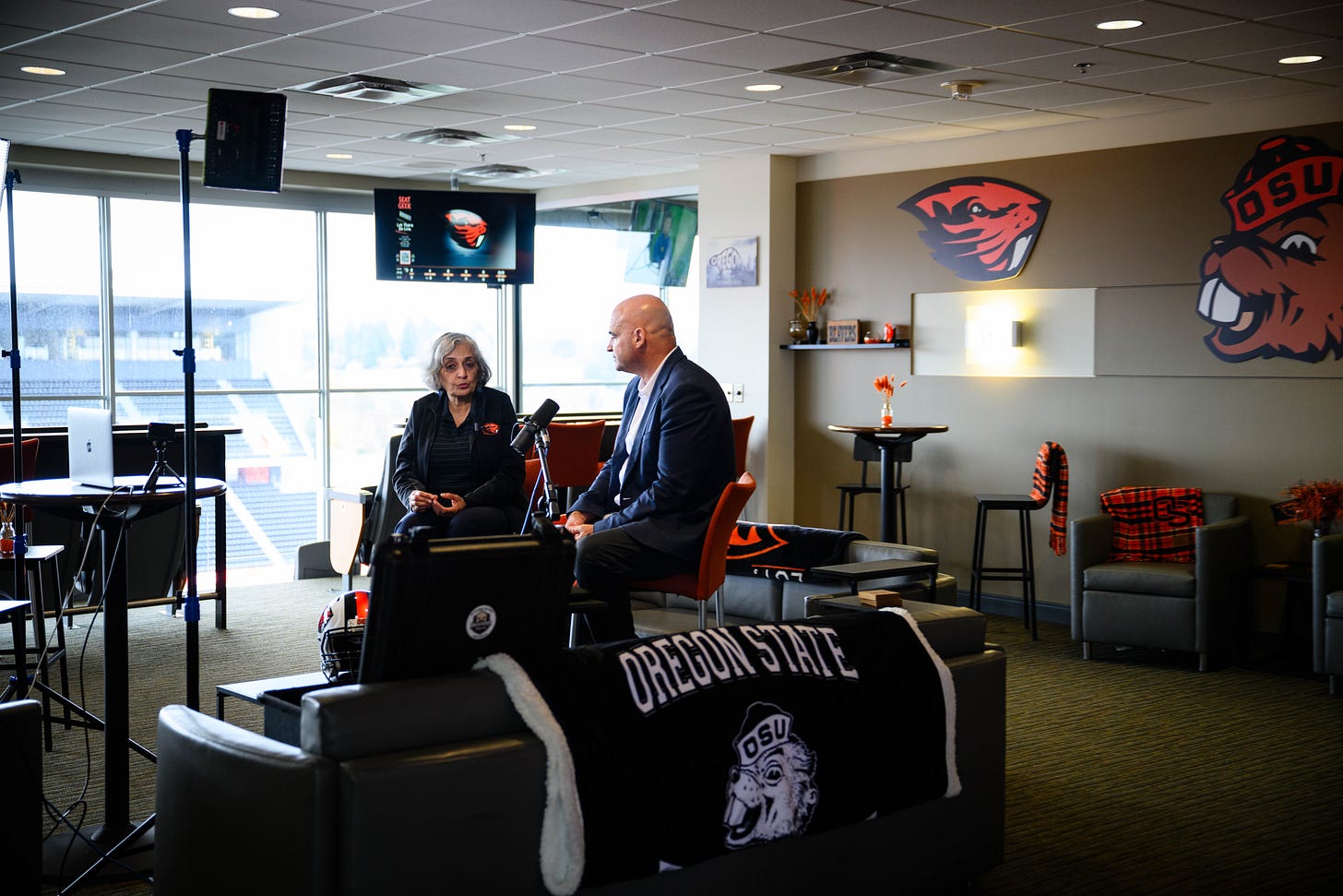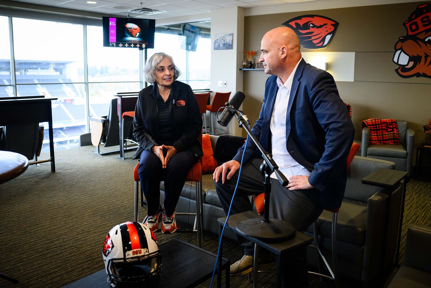 Oregon State President Jayathi Murthy has been on the job for three years. She sat down with me on Saturday for a 1-on-1 interview in her suite at Reser Stadium.