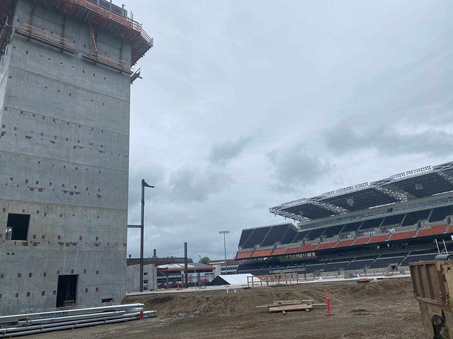 Right now, the stadium is very much an active construction site, but you can see the pillars and “Beaver Street” concourse beginning to take form on the West side. I was at Reser Stadium for the spring game in mid-April. The West side was completely blown out at that point. I watched and wondered if playing in a half-finished stadium would make the atmosphere feel odd. But now that I see pillars and beams rising and the shape of the bowl beginning to form, I think it’s going to look fine.