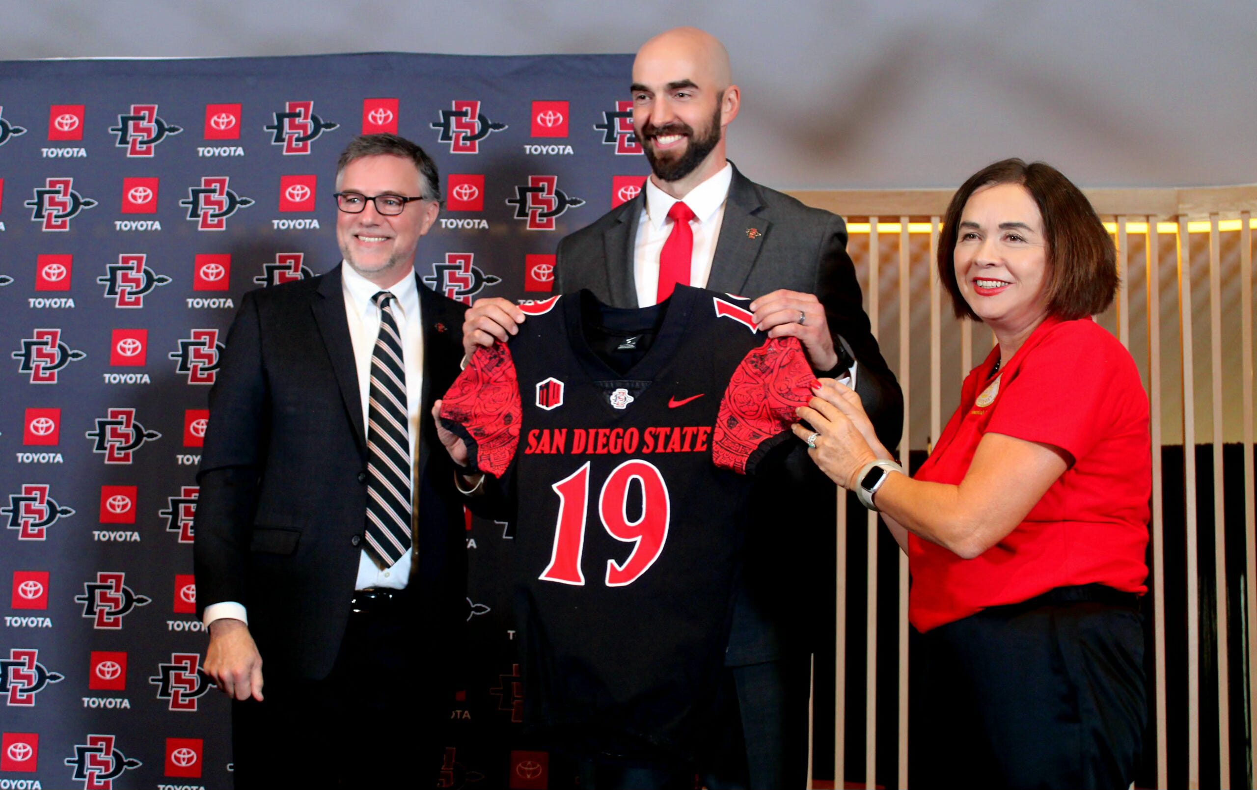 The AD’s duties that day would include greeting the team at the stadium and making the customary walk through the Snapdragon Stadium tailgate area. There would be countless handshakes and back-slaps with donors and season-ticket holders, a drop-in at the school’s “block party” event, and a pre-game radio appearance on the flagship radio station.