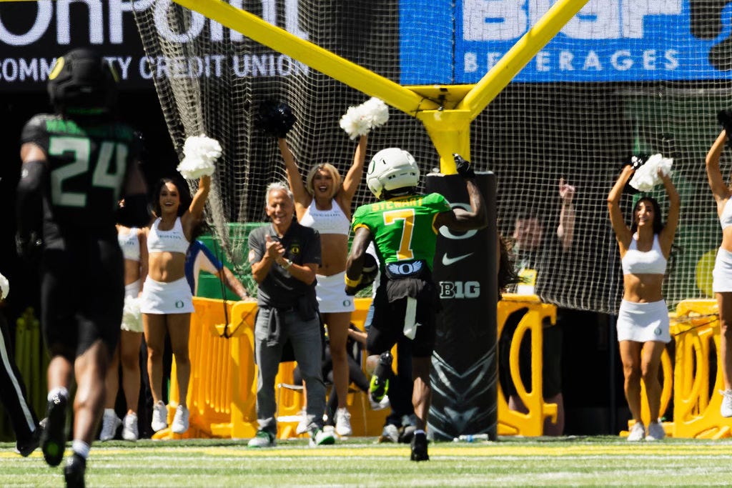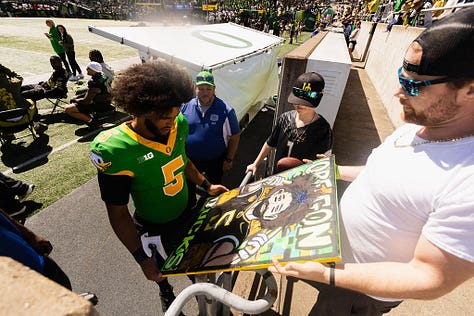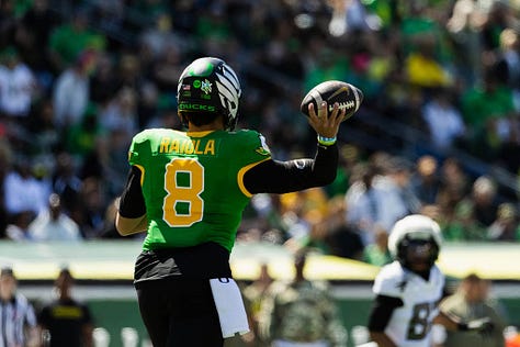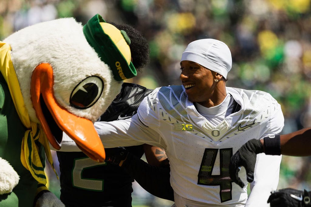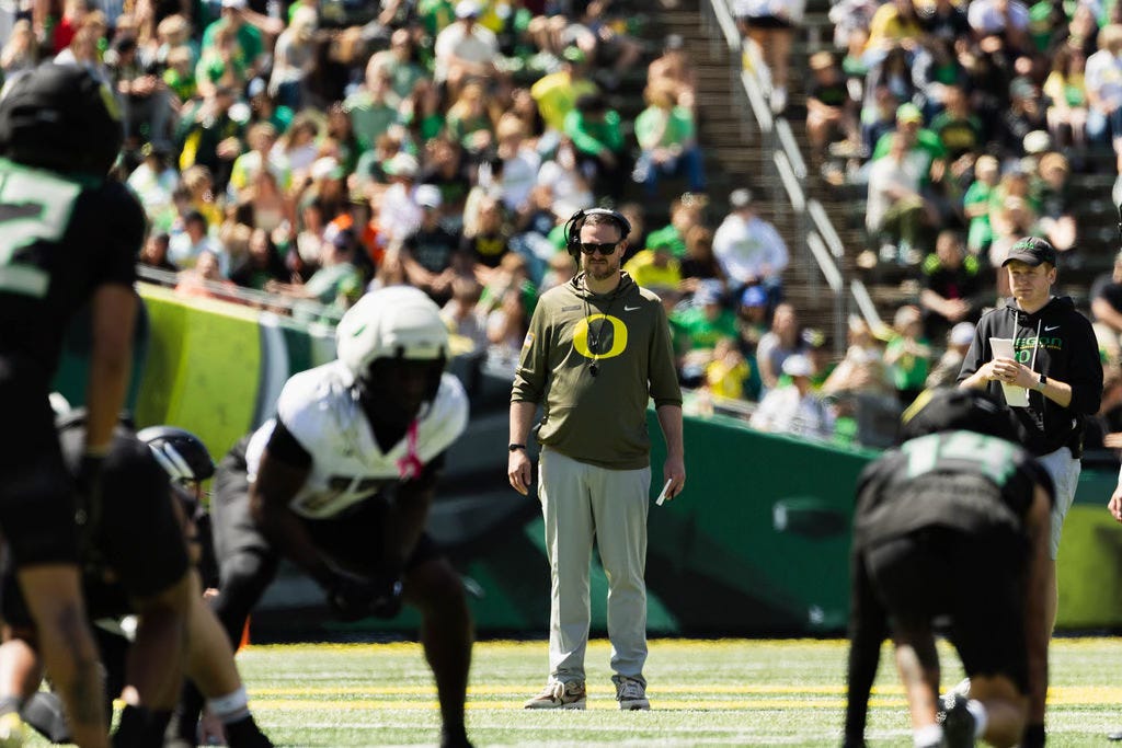 EUGENE — There were a few drops. Some overthrown passes, too. The University of Oregon’s spring game on Saturday had all the usual markers of a scrimmage.