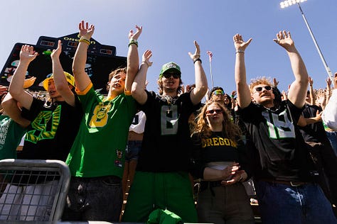 Crowd leads the charge at Autzen Stadium.