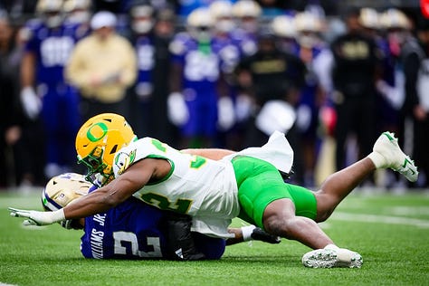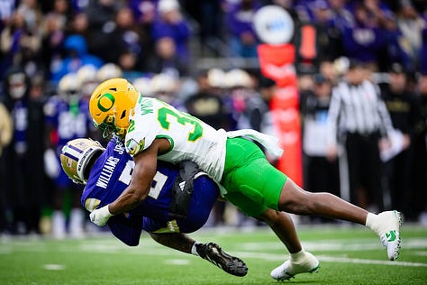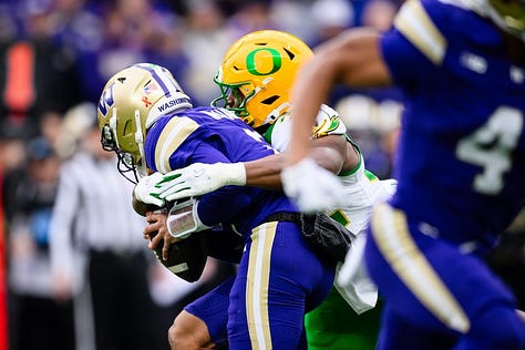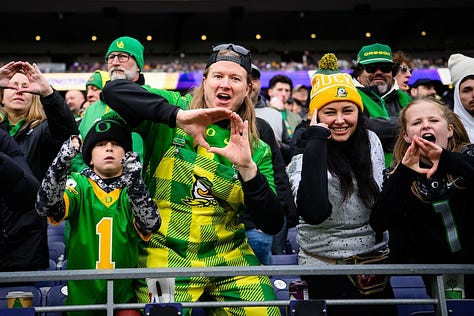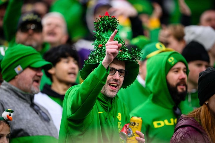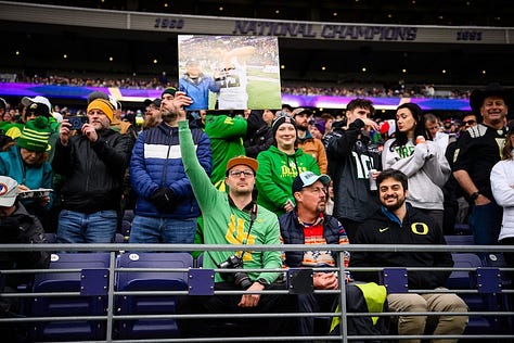 My column from Seattle focused on UO coach Dan Lanning, who ran around slapping the hands of Ducks’ fans after the victory. Lanning’s team will advance to the College Football Playoff and likely host a first-round home game (Dec. 19-20). The bracket and final rankings will be released on Sunday, Dec. 7.