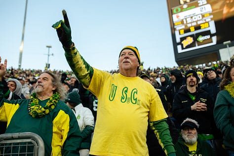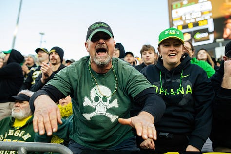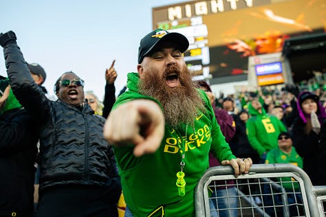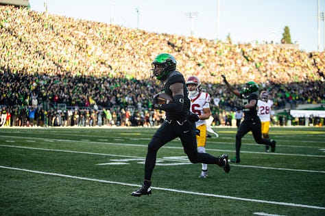 The Ducks ran the ball effectively and owned the line of scrimmage. I wrote a column from the scene about the significance of UO’s victory.