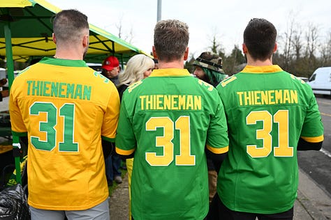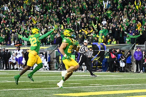 I wrote a column about the College Football Playoff opening-round victory at Autzen Stadium. No. 5 Oregon advances to the quarterfinals and will play No. 4-seed Texas Tech. Photographer Tim Healy was on the scene as well. His photo gallery is worth your time: