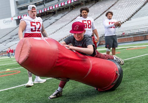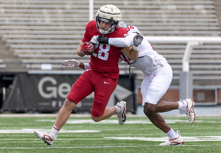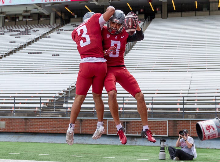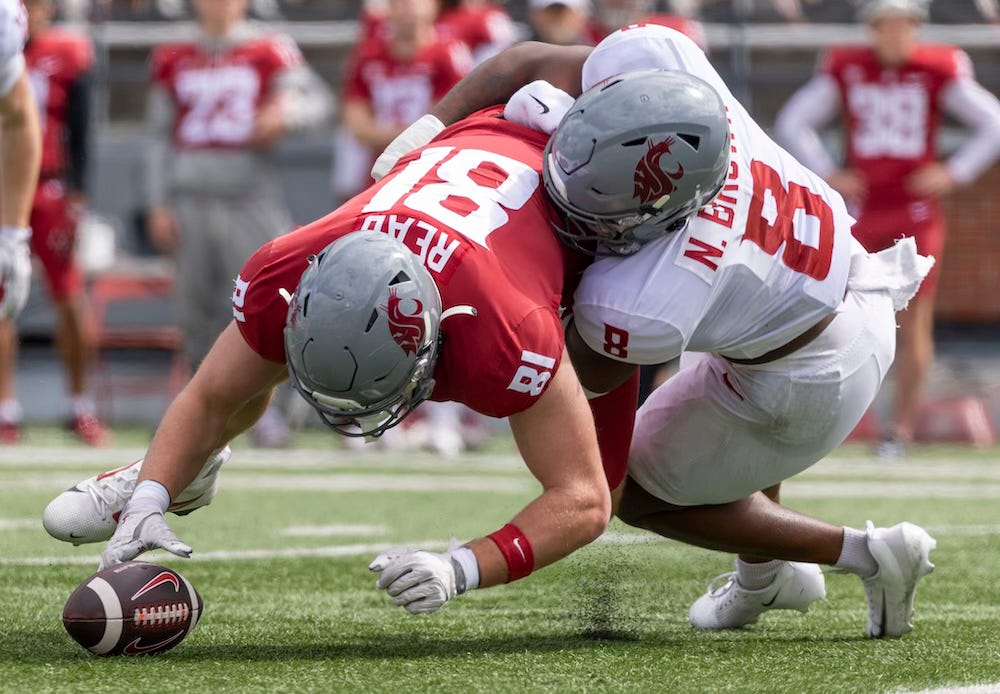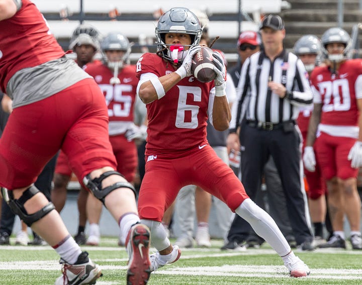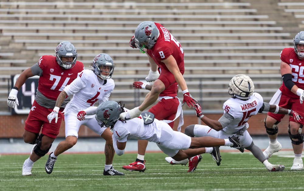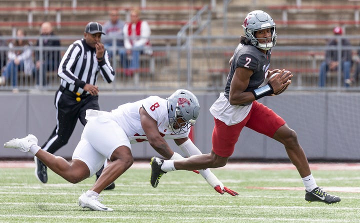 PULLMAN — First-year head coach Kirby Moore held his first “Crimson and Gray” spring scrimmage at Washington State on Saturday.