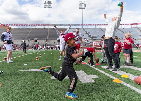 Moore’s defense won the scrimmage under a unique scoring format, 40-29. Defensive coordinator Trent Bray saw his defense intercept two passes to seal the victory. Bray is the former head coach at Oregon State.