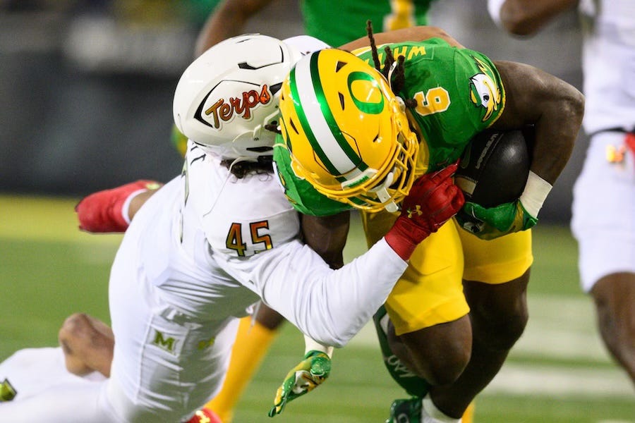 EUGENE — Oregon overcame a sluggish start and went on to beat Maryland 39-18 on Saturday at Autzen Stadium.