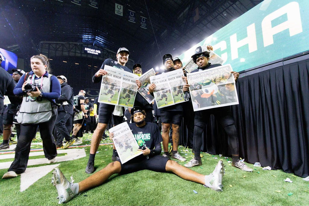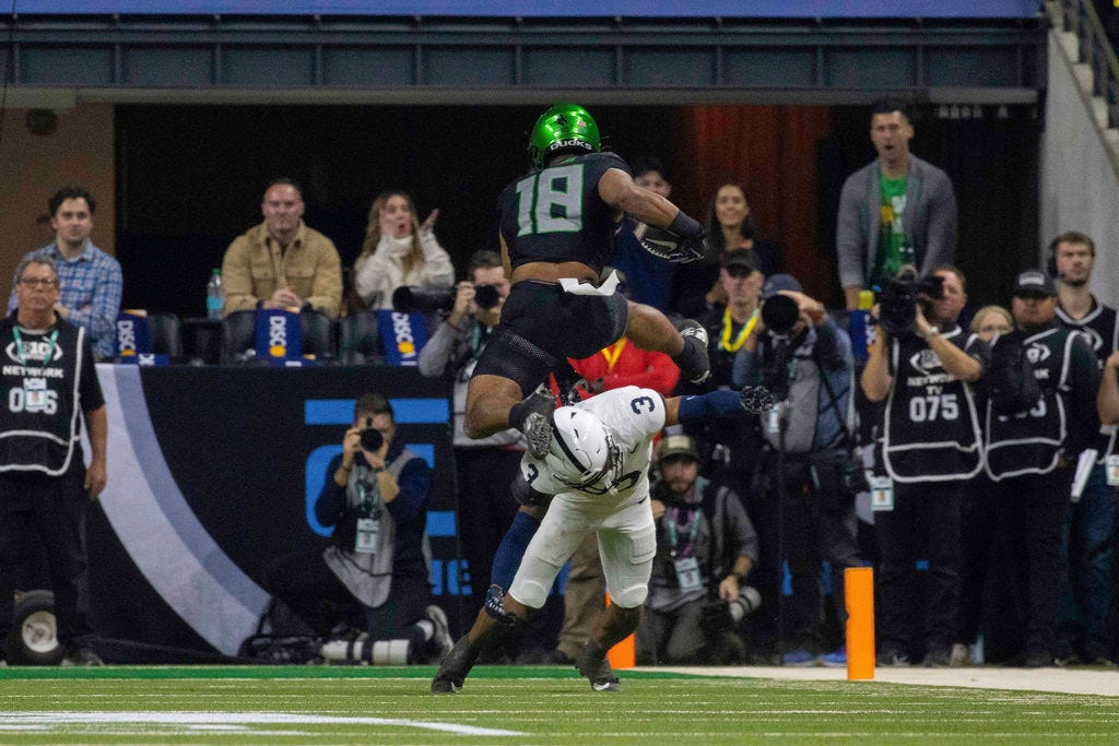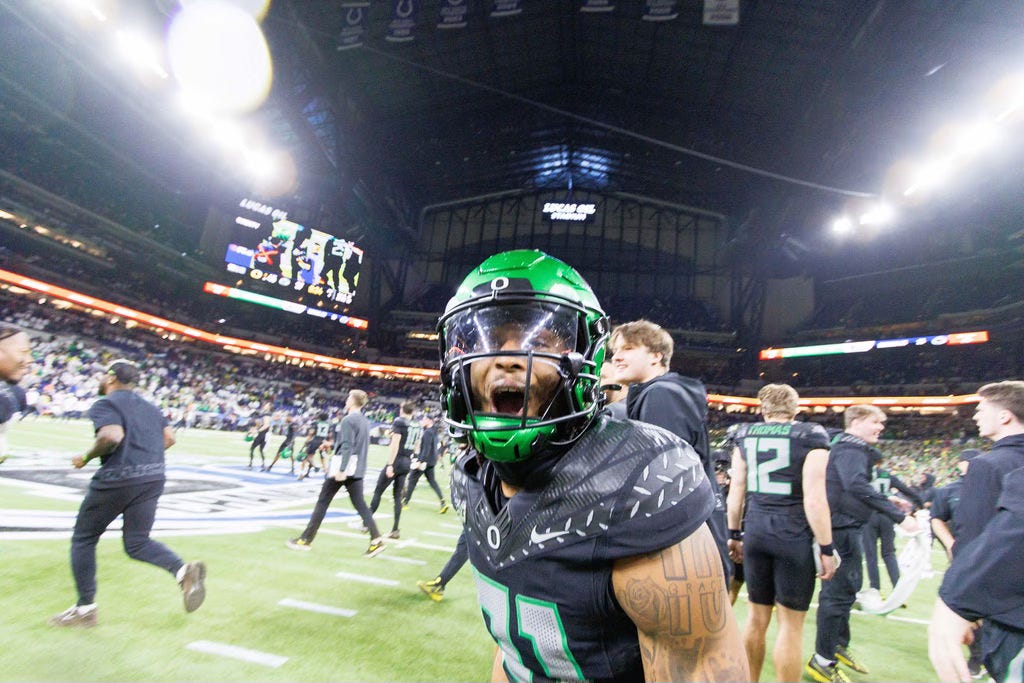 UO receiver Tez Johnson was named the game’s Most Outstanding Player after catching 11 passes for 188 yards. Quarterback Dillon Gabriel tossed four touchdown passes. The Ducks improved to 13-0 this season and will play next in a quarterfinal round of the College Football Playoff at the Rose Bowl on Jan. 1.