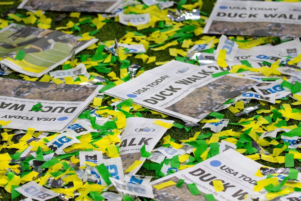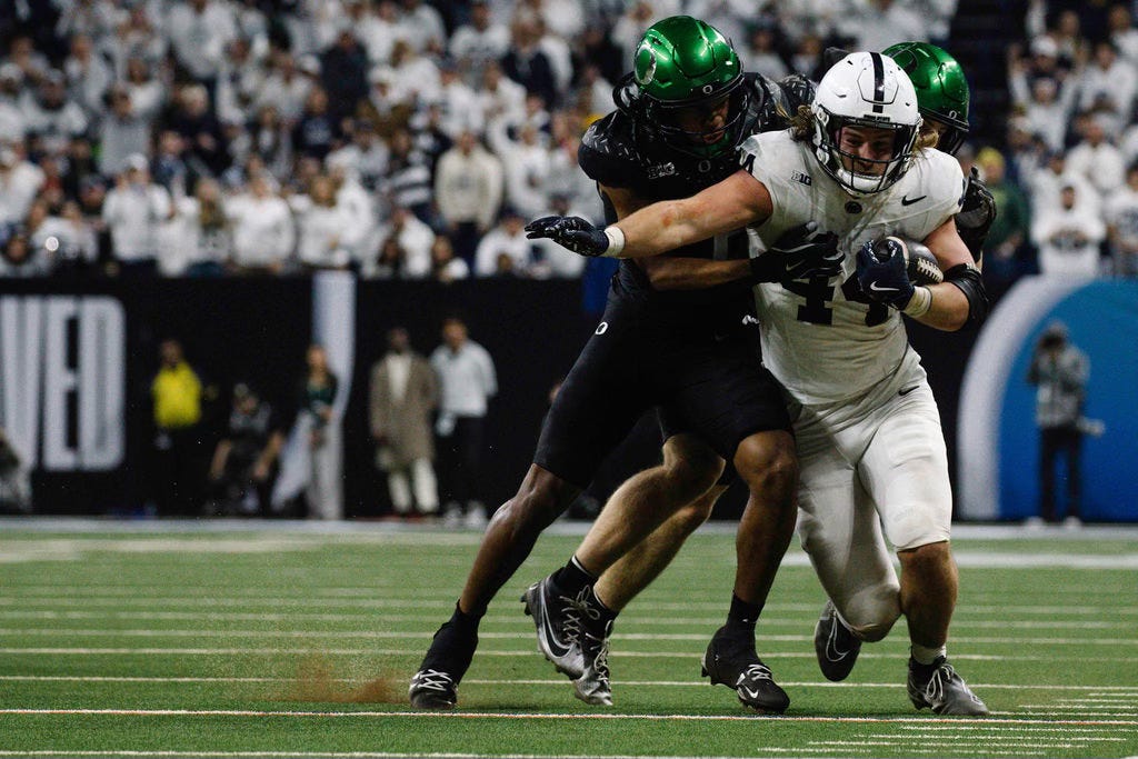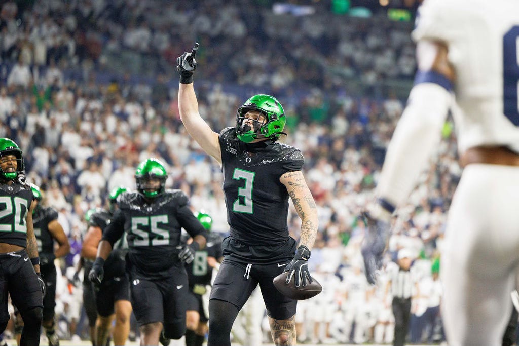 INDIANAPOLIS — The Oregon Ducks scored touchdowns on their first three drives of the game on their way to a 45-37 victory in the Big Ten Championship Game on Saturday.