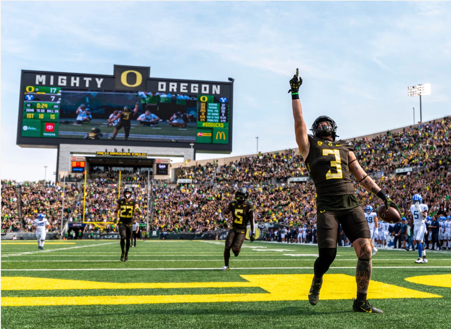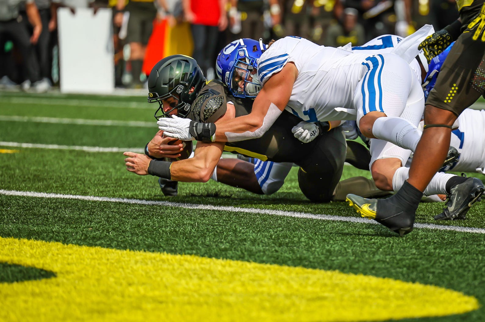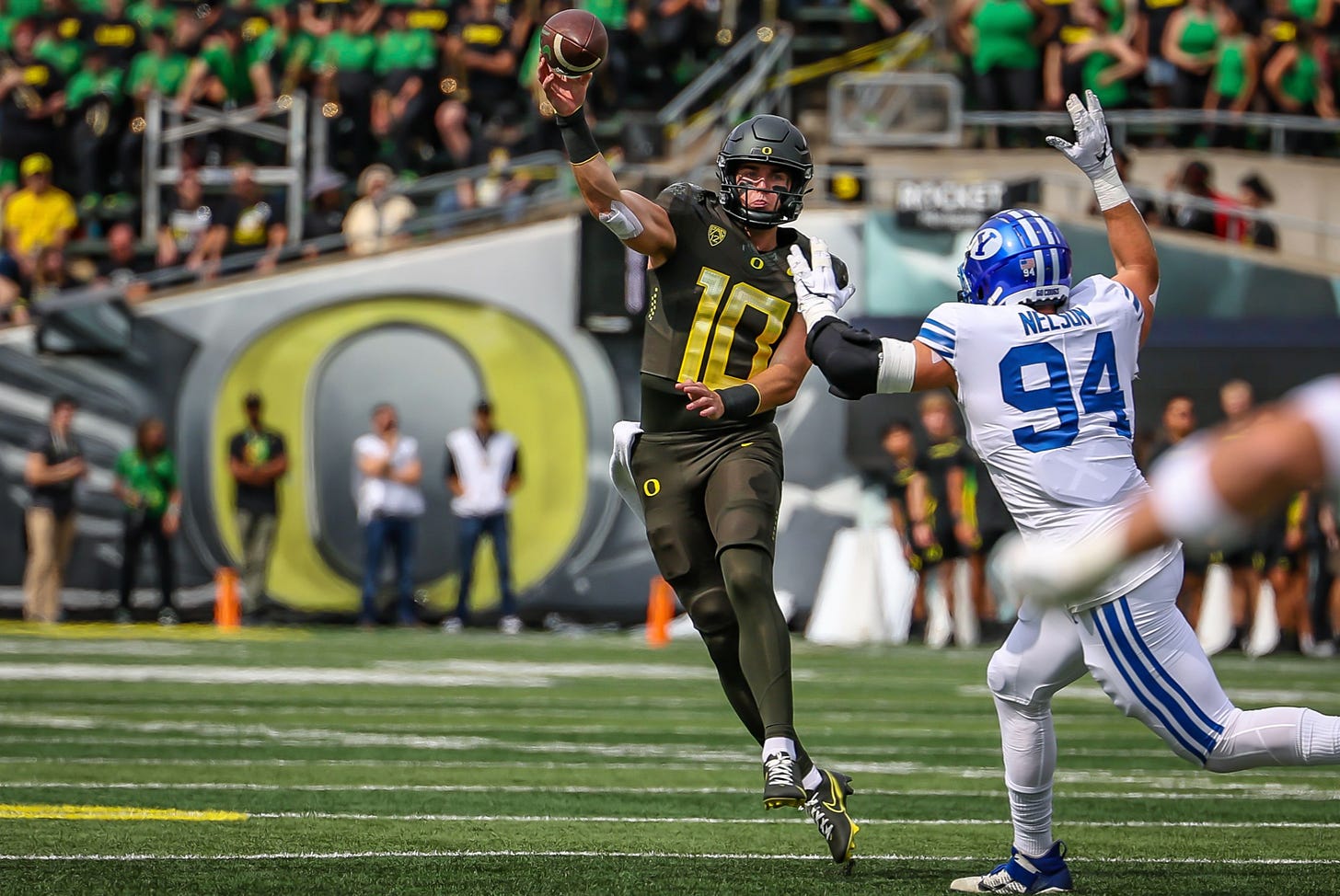 EUGENE — Oregon beat BYU at Autzen Stadium on Saturday. UO quarterback Bo Nix had three rushing touchdowns and two passing TDs.