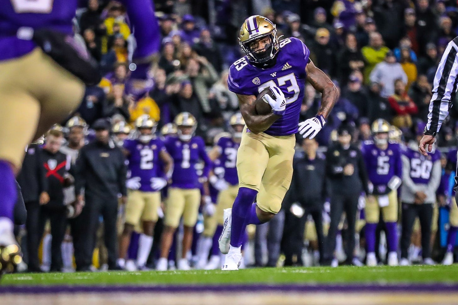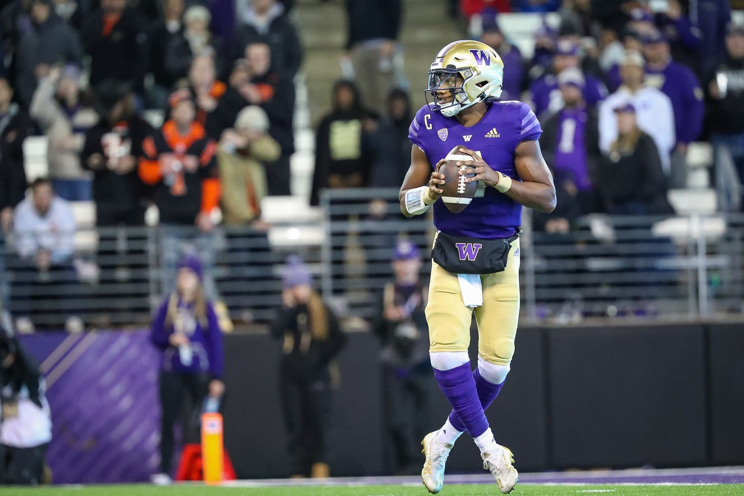 Michael Penix Jr. drops back for Washington. (Photo: Serena Morones)